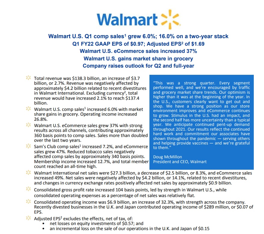 Компания продемонстрировала сильные показатели в части выручки и прибыли на акцию превысив прогнозы аналитиков. Рост электронной коммерции на 37% впечатляет, роста сопоставимых продаж превысил прогнозы. Улучшение прогнозов также позитивно для компании.