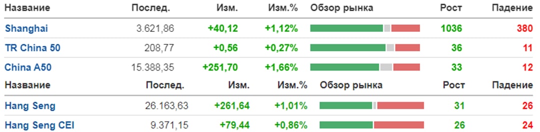 Также силу Китайским индексам добавляет скидки на нефть, которую даёт Саудовская Аравия азиатским партнёрам, однако этот дисконт отражается на мировых ценах на нефть.