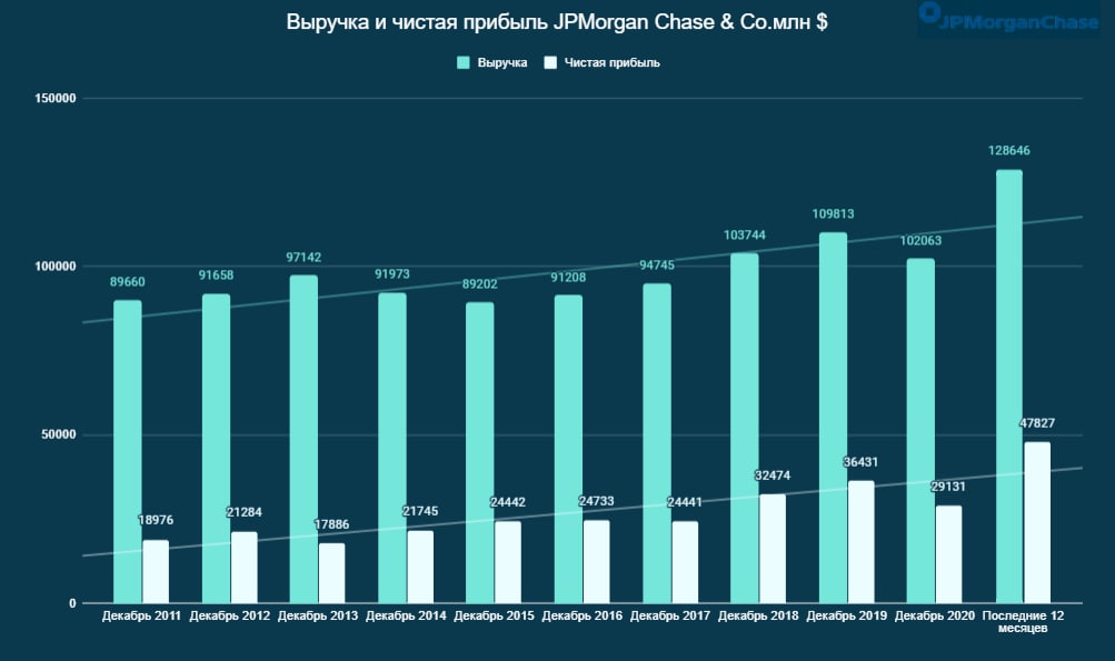 🔸За последние 10 лет годовая выручка банка выросла на 43%, а чистая прибыль на 152%.