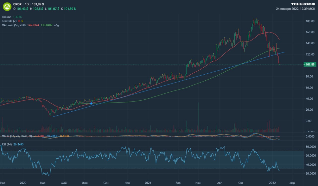 Триггером стала новость о покупке HEYDUDE за $2,5 млрд - $2,05 млрд наличными и $450 млн акциями.