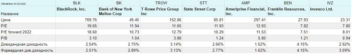 Компания самая дешёвая по мультипликатору p/e, и с самыми высокими дивидендными оценками. Последний месячный отчёт показал падение активов под управлением на 2,3%.