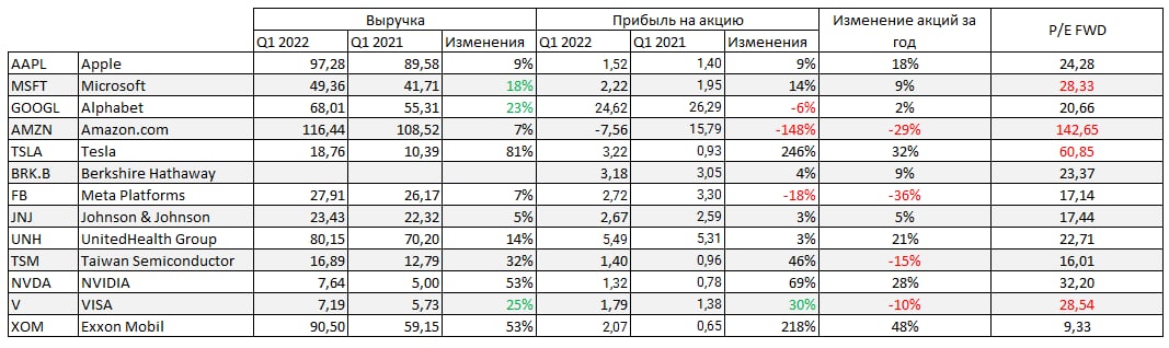 Попробуем пройтись по топ компаниям по капитализации на бирже и разобраться что к чему.