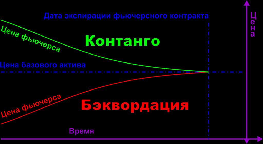 В обоих случаях (контанго и бэквордация) к моменту экспирации стоимость фьючерса равняются стоимости базового актива. Кроме этого на стоимость фьючерса ещё влияют внешние факторы: плохая погода, может сократить будущий урожай, или появился новый производитель из соседней страны, в первом случае стоимость контракта вырастет, во втором - упадёт.