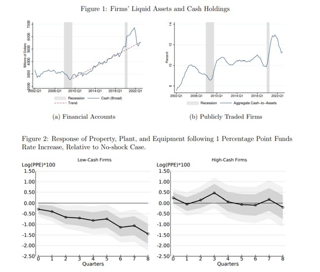 Исторически сложилось так, что компании с более высоким уровнем денежных средств демонстрировали слабую инвестиционную реакцию на денежно-кредитную политику, в то время как компании с более низким уровнем денежных средств демонстрировали значительное сокращение инвестиций.