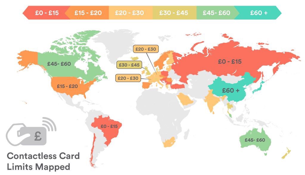 Аналитическая группа Expert Market составила «tap map», чтобы выяснить, в каких странах выше разрешенные суммы транзакций при оплате бесконтактной картой без ввода пин-кода.