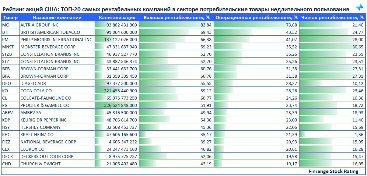 💪Рейтинг акций США: ТОП-20 самых рентабельных компаний в секторе потребительские товары недлительного пользования🇺🇸