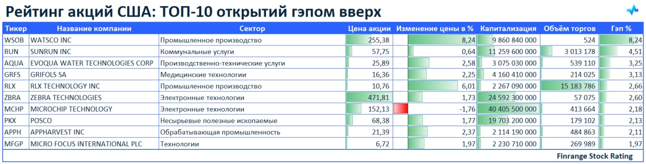 Представляем вашему вниманию топ-10 акций, которые открылись гэпом вверх. В лидерах сегодня акции WATSCO INC #WSOB.
