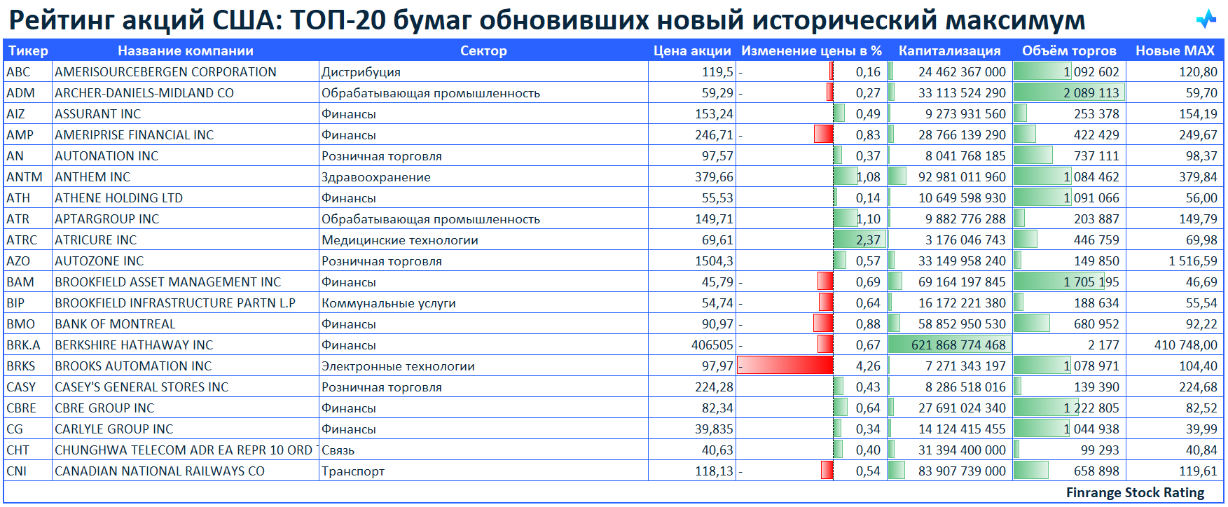 📈Рейтинг акций США: ТОП-20 бумаг обновивших новый исторический максимум🇺🇸
