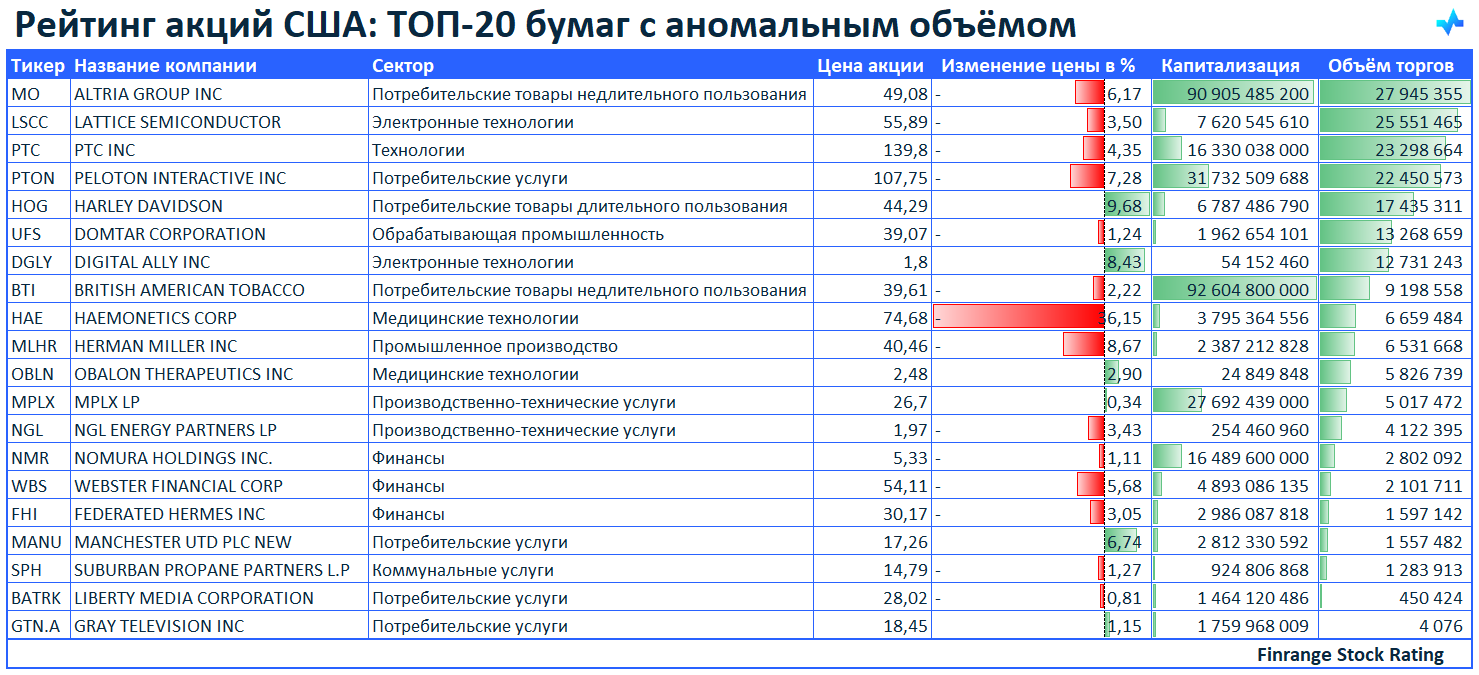 ⚡️Рейтинг акций США: ТОП-20 бумаг с аномальным объёмом🇺🇸