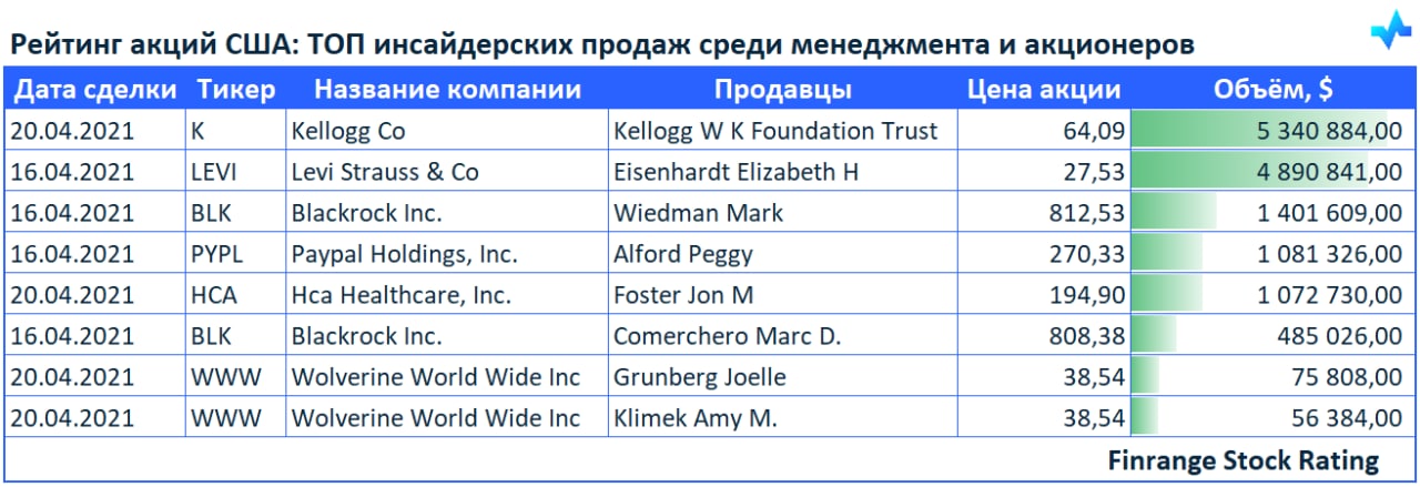 👔📉Рейтинг акций США: ТОП инсайдерских продаж среди менеджмента и акционеров🇺🇸