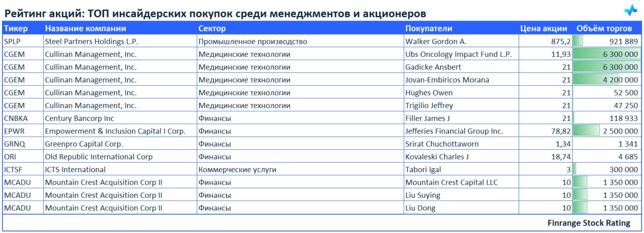 👔Рейтинг акций: ТОП инсайдерских покупок среди менеджмента и акционеров