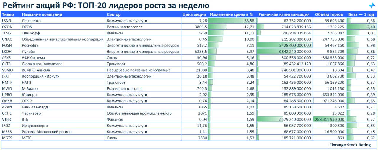 🇷🇺Рейтинг акций РФ: ТОП-20 лидеров роста за неделю