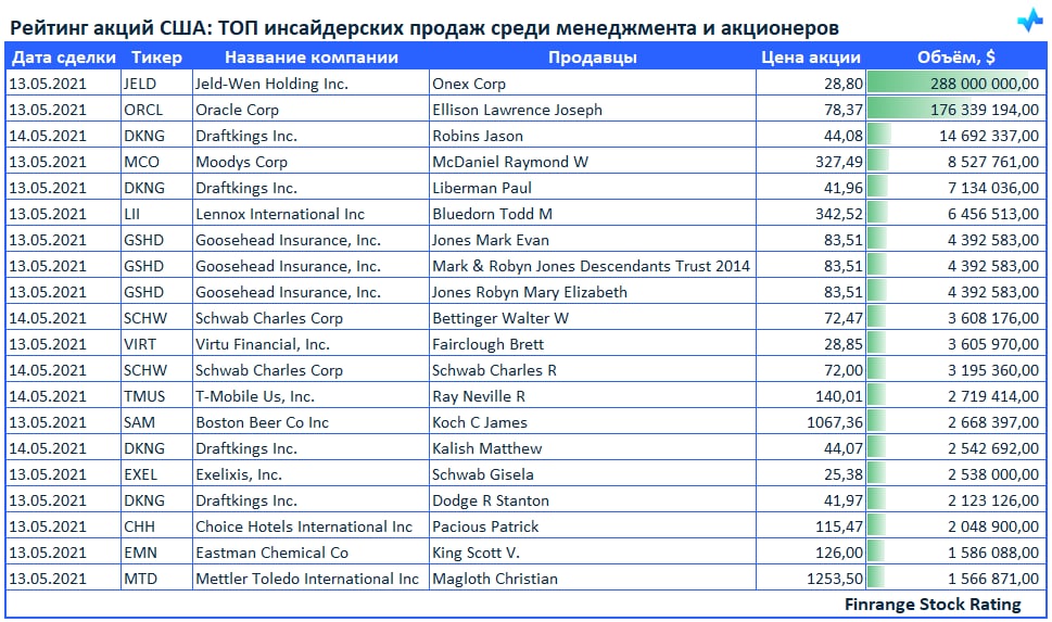 Представляем вашему вниманию свежую информацию по инсайдерским продажам среди менеджмента компаний и крупных акционеров. В этот раз больше всего продаж наблюдалось в акциях Oracle Corp #ORCL.