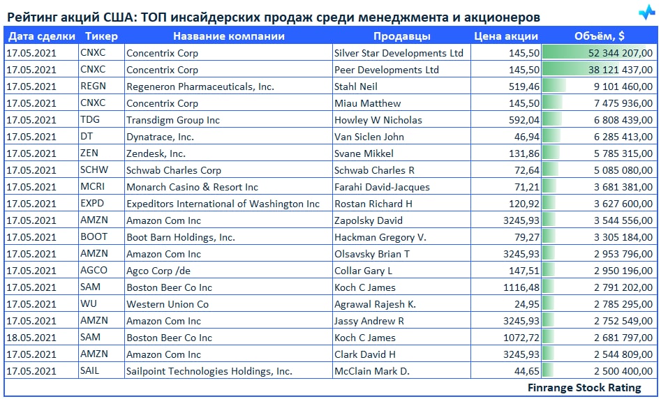👔📉Рейтинг акций США: ТОП инсайдерских продаж среди менеджмента и акционеров🇺🇸