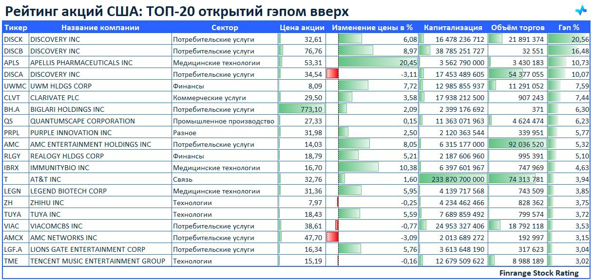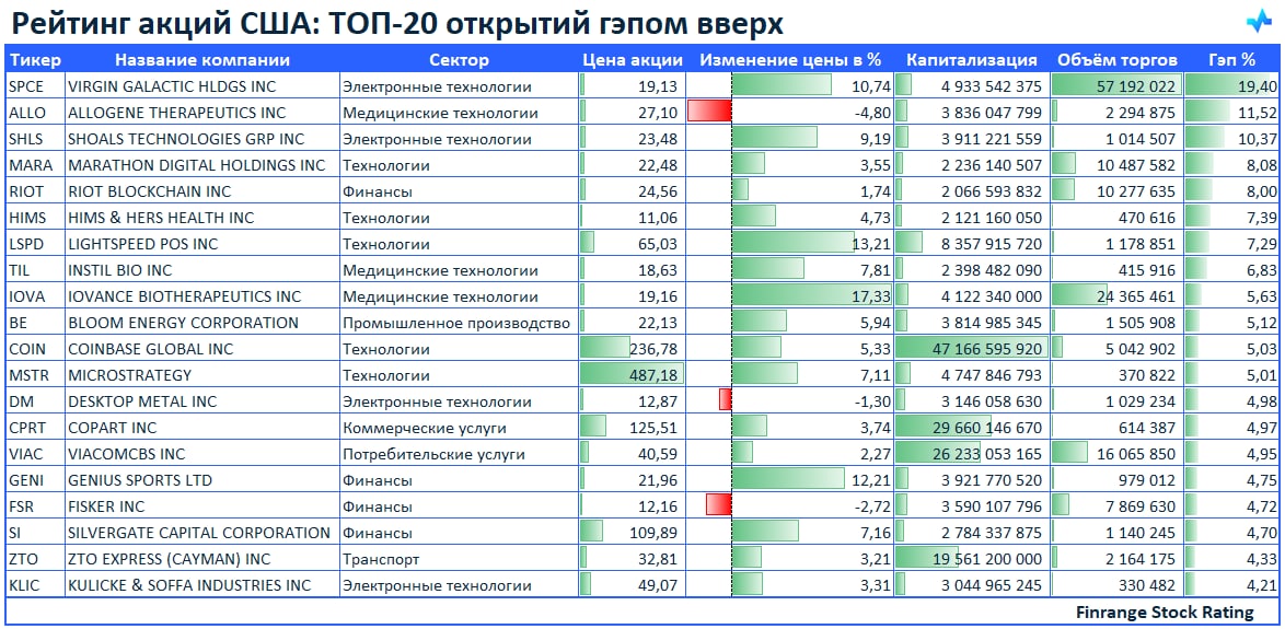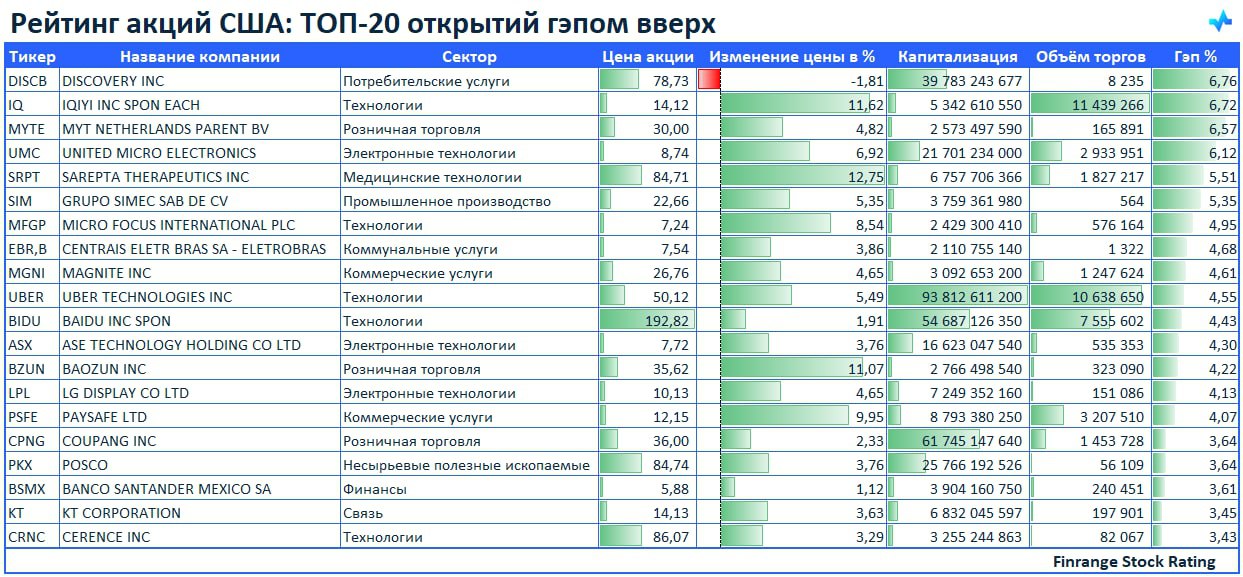 🚀Рейтинг акций: ТОП-20 открытий гэпом вверх🇺🇸