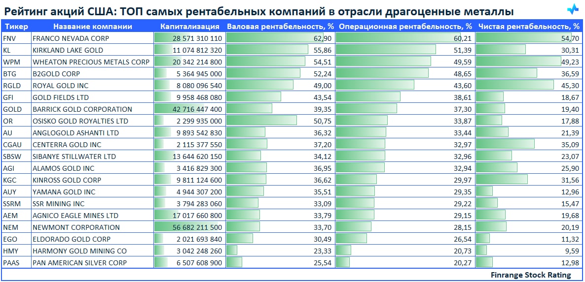 💪Рейтинг акций США: ТОП самых рентабельных компаний в отрасли драгоценные металлы🇺🇸