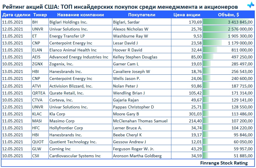 👔Рейтинг акций США: ТОП инсайдерских покупок среди менеджмента и акционеров🇺🇸