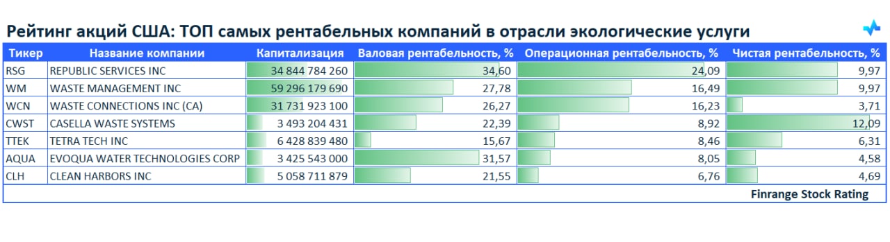 💪Рейтинг акций США: ТОП самых рентабельных компаний в отрасли экологические услуги🇺🇸