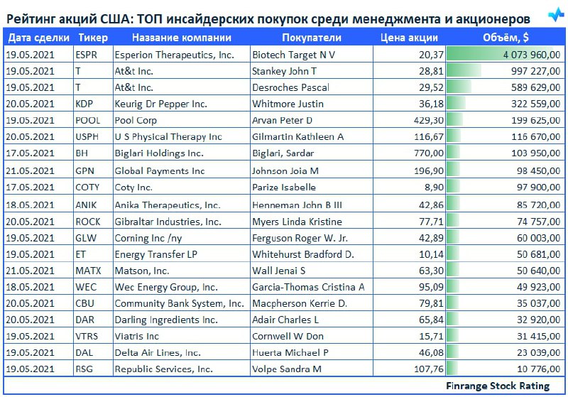 👔📈Рейтинг акций США: ТОП инсайдерских покупок среди менеджмента и акционеров🇺🇸