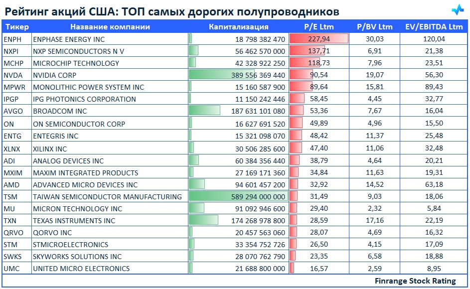 😱Рейтинг акций США: ТОП самых дорогих полупроводников🇺🇸