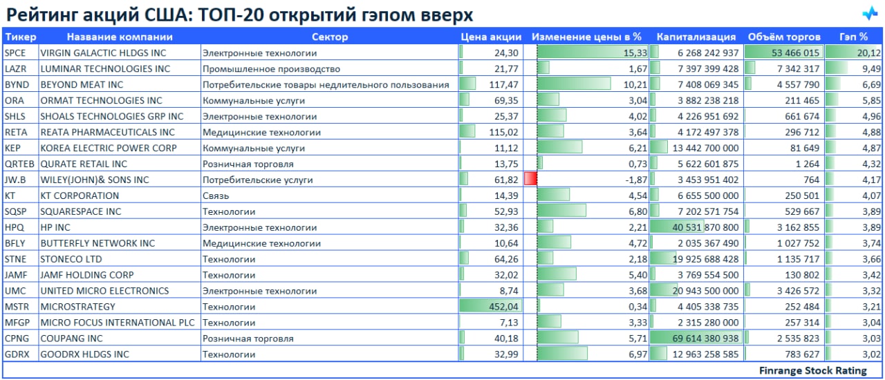 🚀Рейтинг акций: ТОП-20 открытий гэпом вверх🇺🇸
