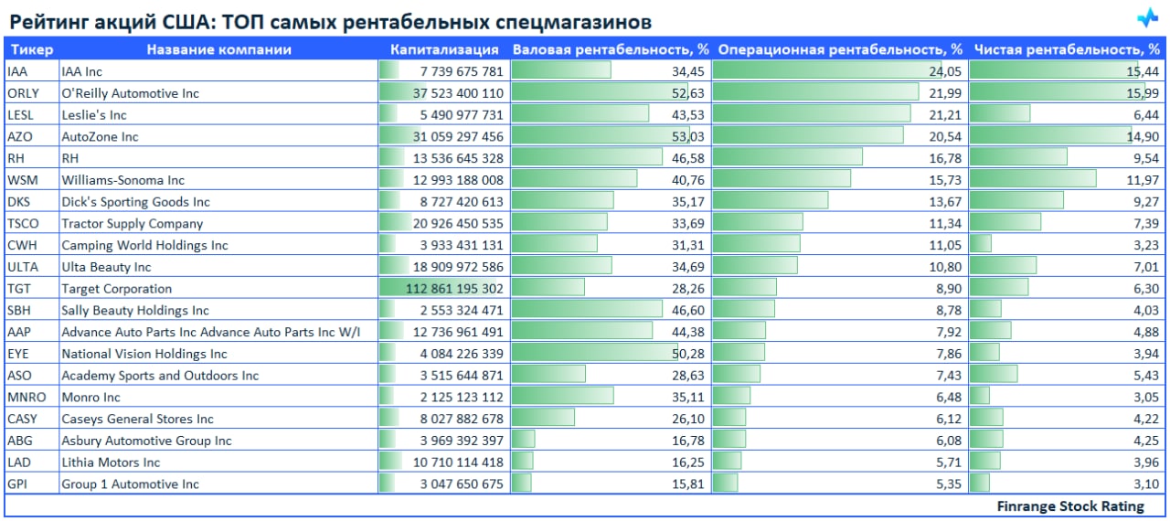 💪Рейтинг акций США: ТОП самых рентабельных спецмагазинов🇺🇸