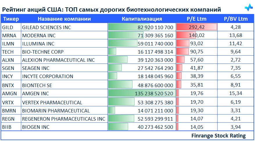 😱Рейтинг акций США: ТОП самых дорогих биотехнологических компаний🇺🇸