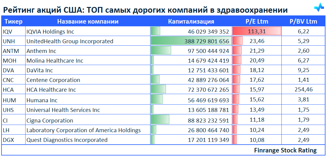 😱Рейтинг акций США: ТОП самых дорогих компаний в здравоохранении🇺🇸