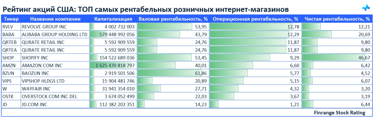 💪Рейтинг акций США: ТОП самых рентабельных розничных интернет-магазинов🇺🇸