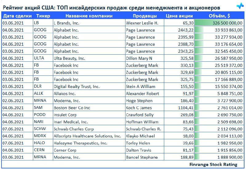 👔📉Рейтинг акций США: ТОП инсайдерских продаж среди менеджмента и акционеров🇺🇸