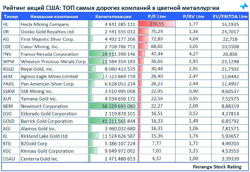 😱Рейтинг акций США: ТОП самых дорогих компаний в цветной металлургии🇺🇸