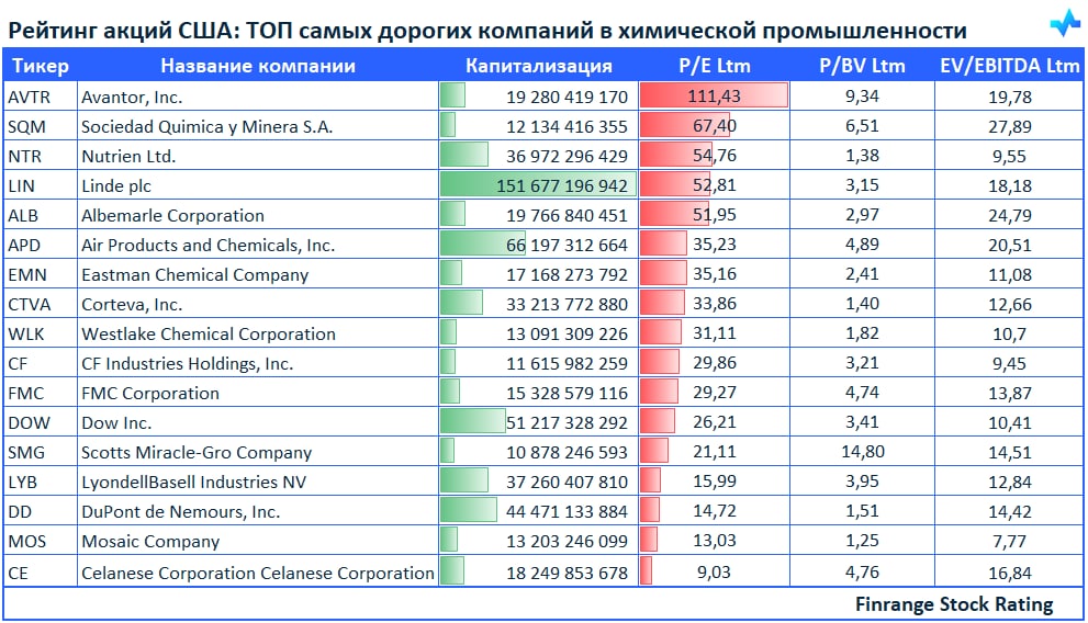 😱Рейтинг акций США: ТОП самых дорогих компаний в химической промышленности🇺🇸