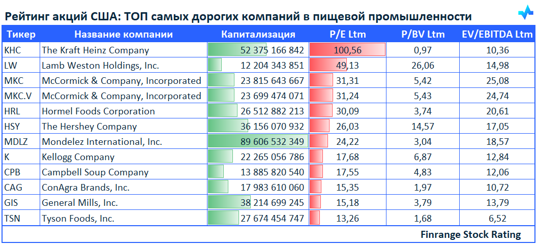 😱Рейтинг акций США: ТОП самых дорогих компаний в пищевой промышленности🇺🇸
