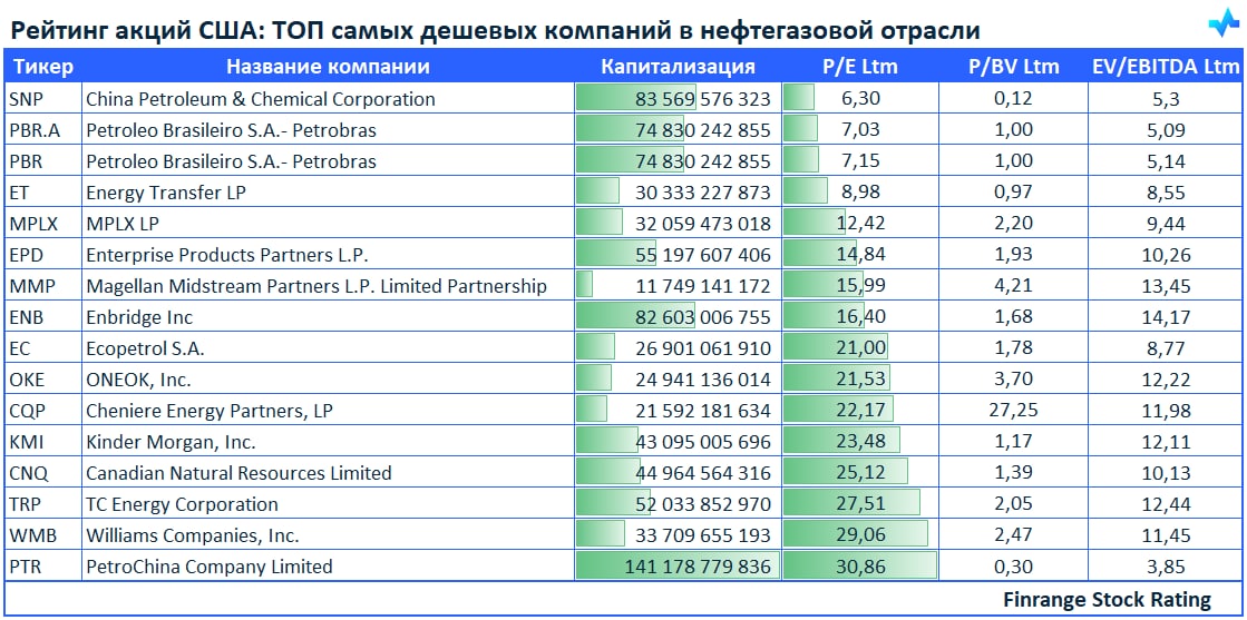 😱Рейтинг акций США: ТОП самых дешевых компаний в нефтегазовой отрасли🇺🇸