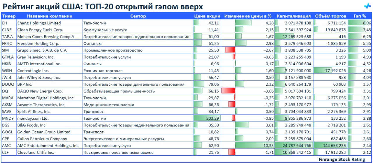🚀Рейтинг акций: ТОП-20 открытий гэпом вверх🇺🇸
