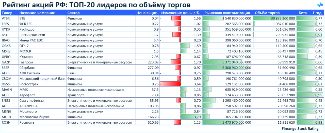 🌪Рейтинг акций РФ: ТОП-20 лидеров по объёму торгов