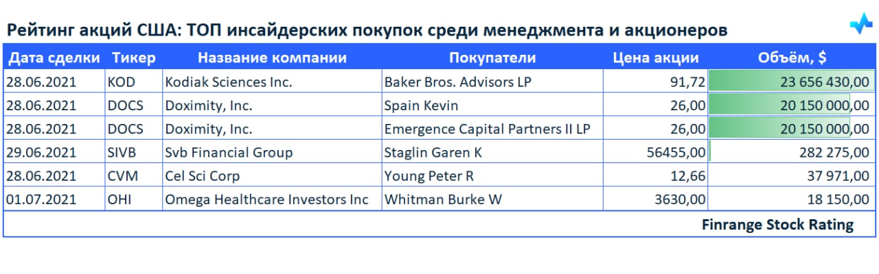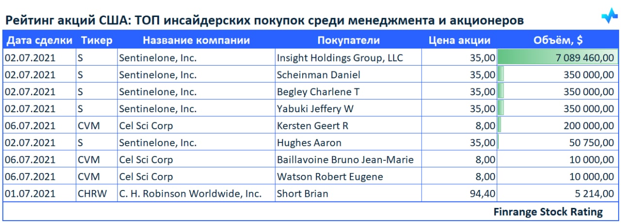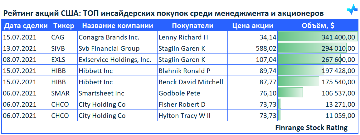 👔📈Рейтинг акций США: ТОП инсайдерских покупок среди менеджмента и акционеров🇺🇸