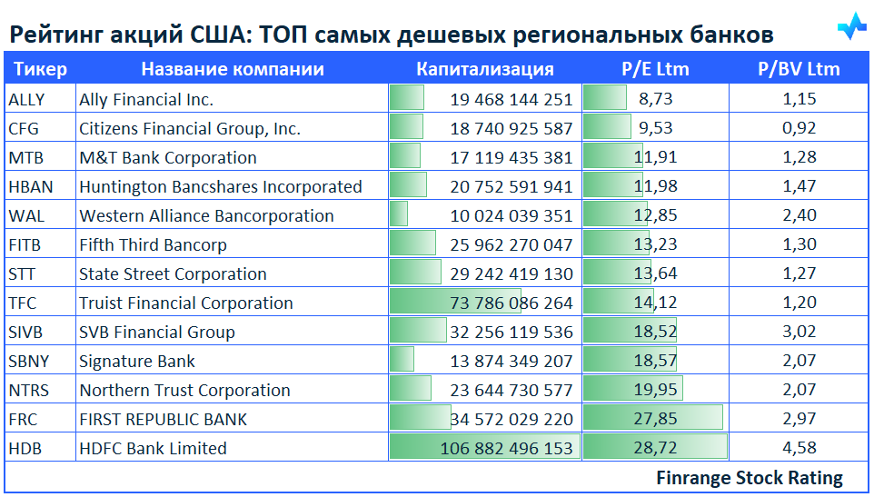 😱Рейтинг акций США: ТОП самых дешевых региональных банков🇺🇸