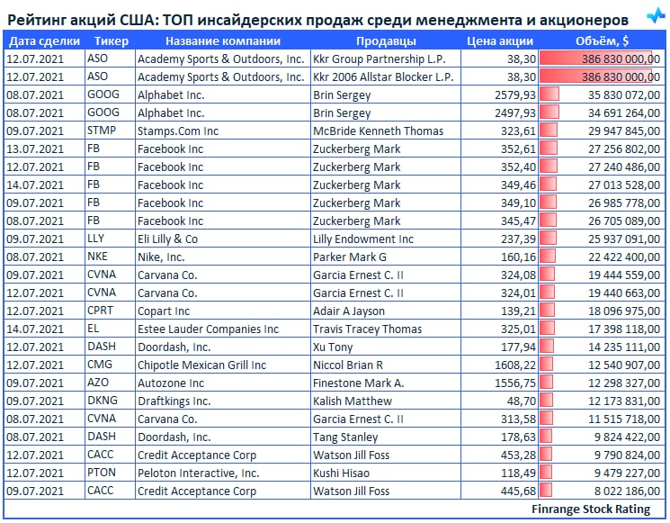 Представляем вашему вниманию свежую информацию по инсайдерским продажам среди менеджмента компаний и крупных акционеров. В этот раз больше всего продаж наблюдалось в акциях Academy Sports & Outdoors Inc #ASO.