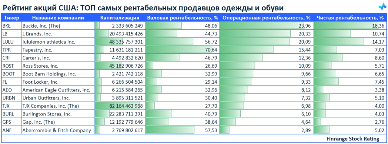 💪Рейтинг акций США: ТОП самых рентабельных продавцов одежды и обуви🇺🇸