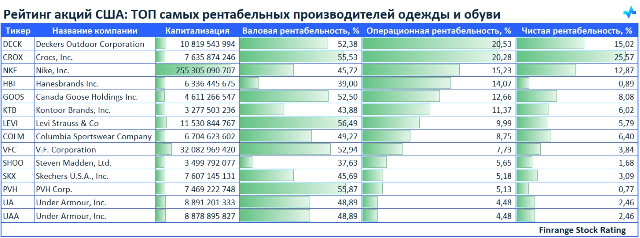 💪Рейтинг акций США: ТОП самых рентабельных производителей одежды и обуви🇺🇸