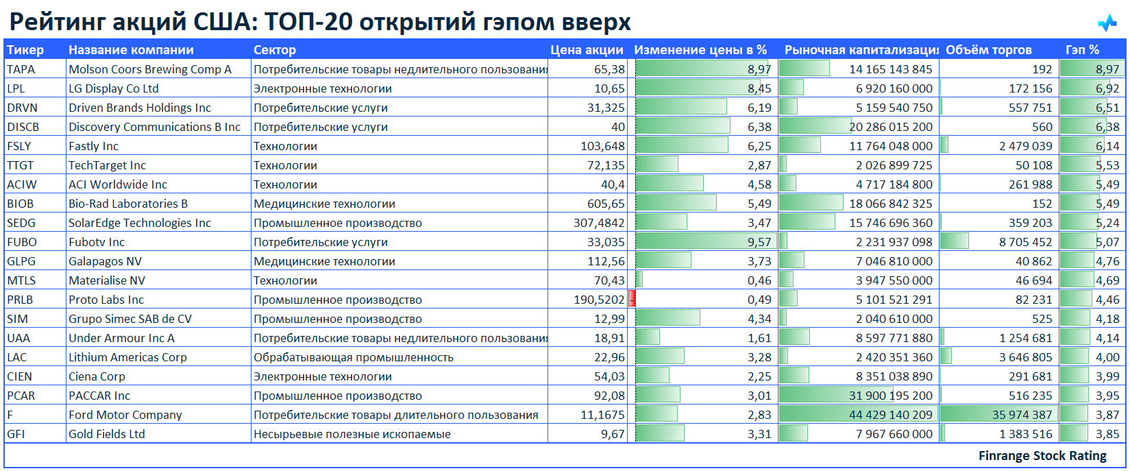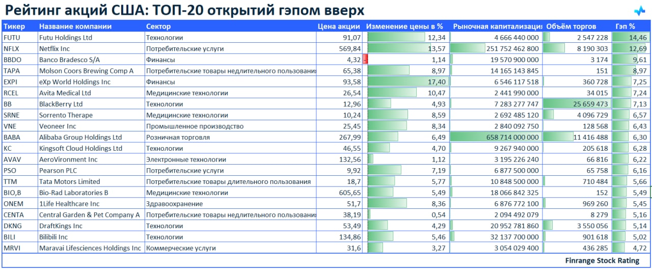 🚀Рейтинг акций: ТОП-20 открытий гэпом вверх🇺🇸