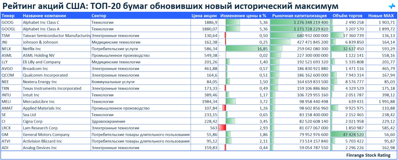 Представляем вашему вниманию топ-20 акций, которые обновили новые исторические максимумы.