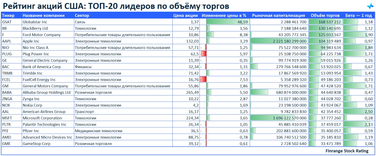 🌪Рейтинг акций США: ТОП-20 лидеров по объёму торгов🇺🇸