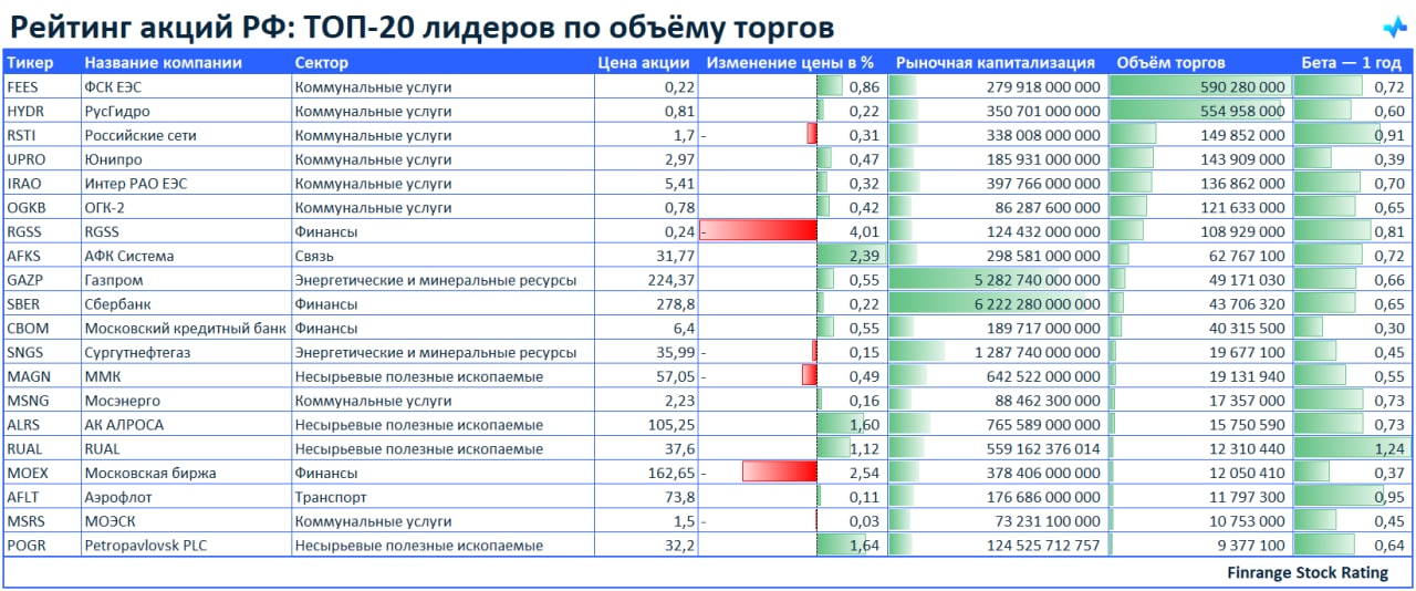 🌪Рейтинг акций РФ: ТОП-20 лидеров по объёму торгов🇷🇺