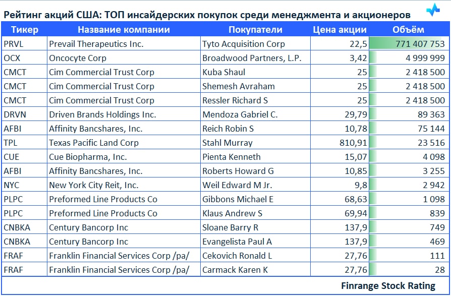 👔Рейтинг акций: ТОП инсайдерских покупок среди менеджмента и акционеров