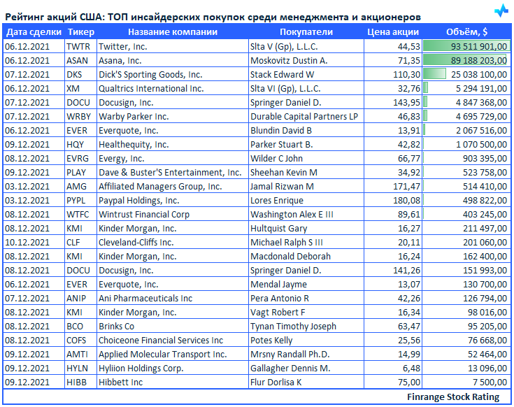 👔📈Рейтинг акций США: ТОП инсайдерских покупок среди менеджмента и акционеров🇺🇸