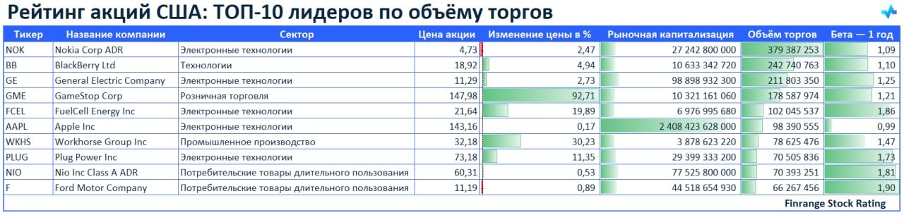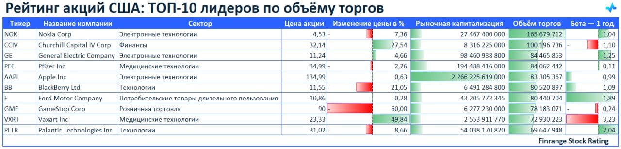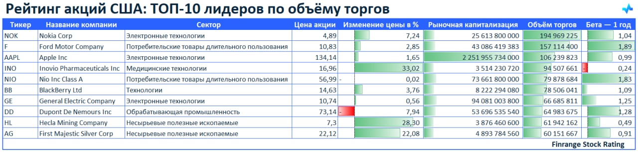 🌪Рейтинг акций США: ТОП-10 лидеров по объёму торгов🇺🇸