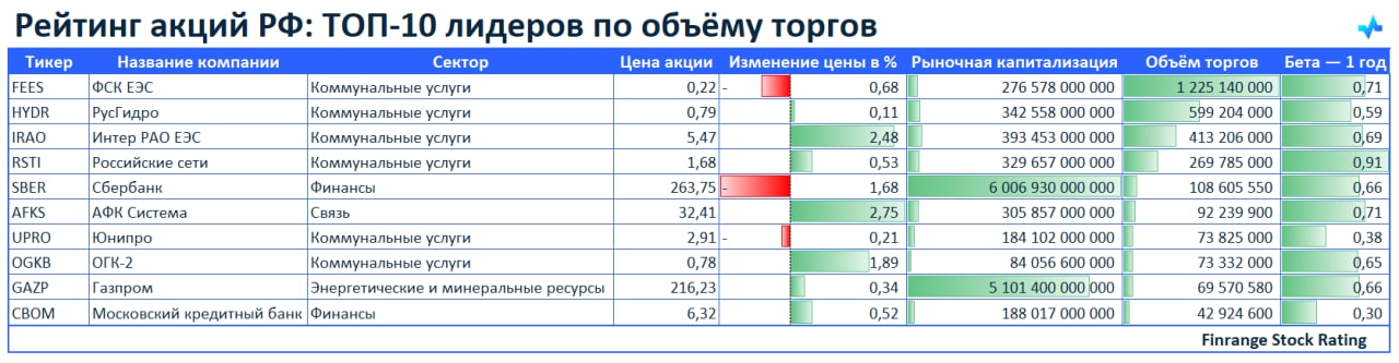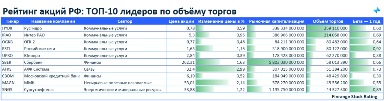 🌪Рейтинг акций РФ: ТОП-10 лидеров по объёму торгов🇷🇺