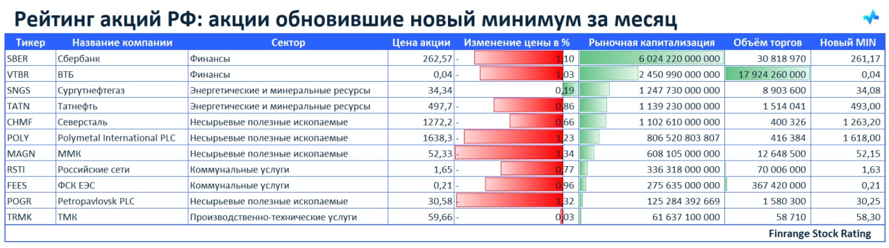 ⚡️Рейтинг акций РФ: акции обновившие новый минимум за месяц🇷🇺
